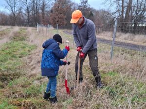 Ausgestattet mit Spaten, Pflanzschaufeln, Handhacken, Handschuhen und einer Menge guter Laune machten sich die Kinder daran, die kleinen Bäume in die Erde zu setzen, um einen nachhaltigen Gedanken in die Tat umzusetzen. So werden die Eichen nicht nur unsere Luft verbessern, sondern auch Lebensraum für viele Tiere bieten.